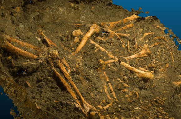 Bộ xương bên trái trong tư thế ôm ban đầu được cho là của một phụ nữ. Tuy nhiên phân tích sau đó cho thấy hai bộ xương đều là đàn ông. Họ được cho là những chiến hữu đã cùng hy sinh thời đó.