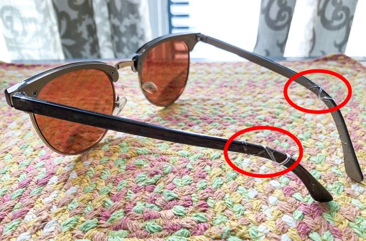 Dùng dây chun để cố định kính râm không bị tuột xuống