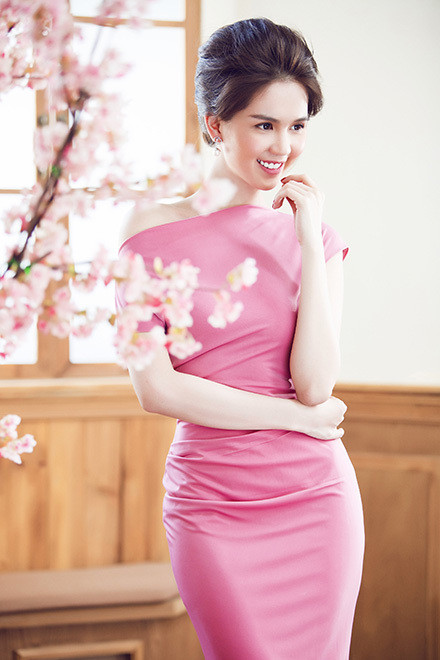 Bộ đầm ôm, gam hồng phai cho những bạn gái nữ tính.