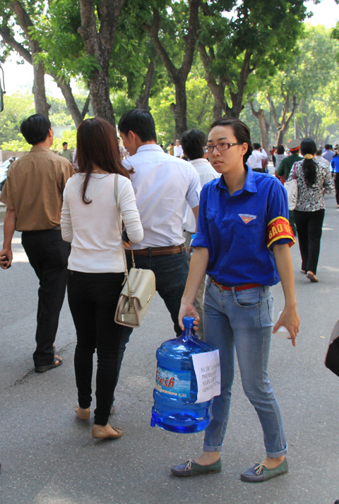 Nhiều sinh viên tình nguyện dắt người già, thương binh, phụ nữ qua đường. Người bê nước, ghi vé xe phục vụ miễn phí người dân đến thăm viếng.
