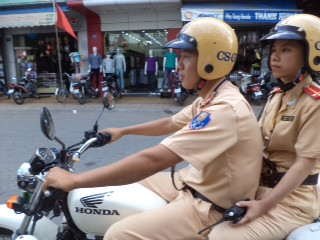 Nữ cảnh sát giao thông làm nhiệm vụ trên đường phố