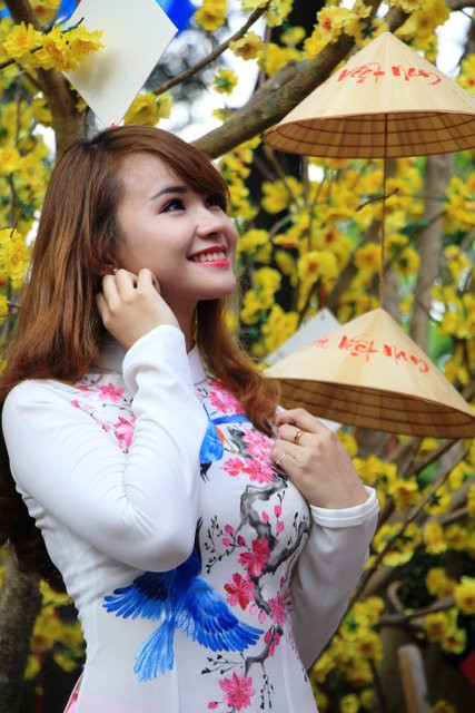 Thiếu nữ làm duyên làm dáng để lưu lại những bức ảnh vui trong mùa xuân mới