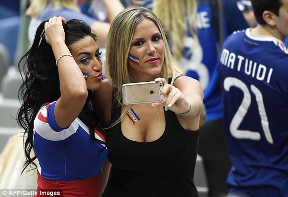 Nữ CĐV gợi cảm giơ cao băng rôn ủng hộ tuyển Pháp