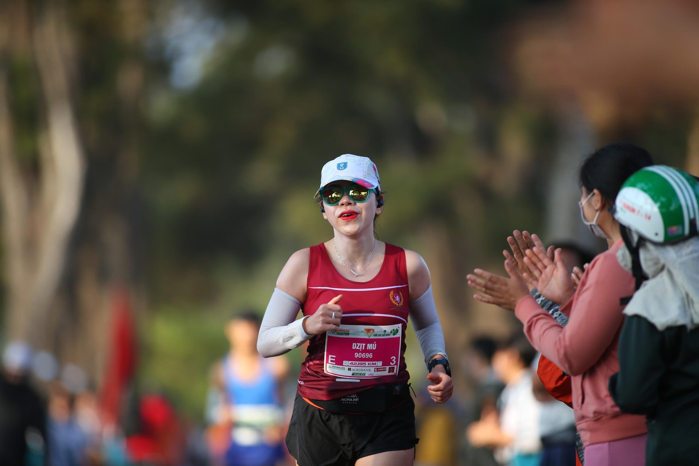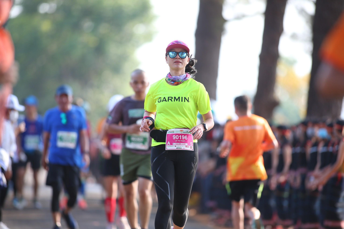 Sự xuất hiện của những nữ VĐV phong trào xinh đẹp trên đường đua, góp phần thổi lửa cho cuộc tranh đua tại giải Tiền Phong Marathon 2021 them phần quyết liệt.