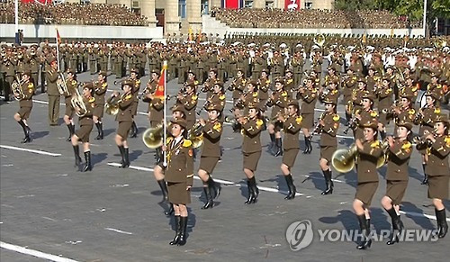 Đội quân nhạc toàn nữ biểu diễn tại lễ kỷ niệm mừng 70 năm thành lập đảng Lao động Triều Tiên.