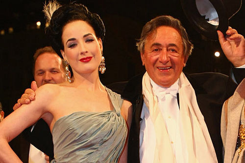 Richard Lugner là ông trùm ngành xây dựng nước Áo, nổi tiếng với việc vung tiền mời các ngôi sao hẹn hò với mình trong bữa tiệc Opera Ball tổ chức thường niên. Trong ảnh: Richard Lugner thoải mái khoác vai Dita Von Teese.
