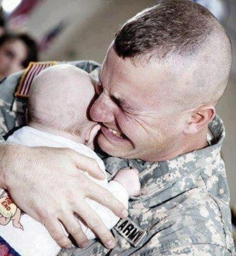 Khoảnh khắc một lính Mỹ lần đầu gặp con sau nhiều tháng chiến đấu tại chiến trường Iraq khiến nhiều người suy nghĩ về cái giá của chiến tranh. Ảnh: Buzzfeed.