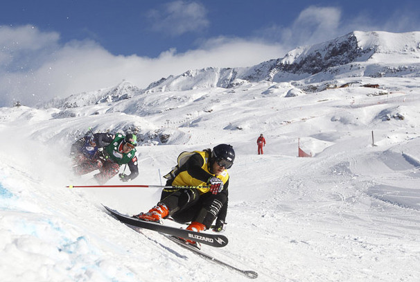 Vận động viên trượt tuyết người Thụy Sĩ Conradign Netzer dẫn đầu đoàn đua trong cuộc thi trượt tuyết tại Alpe d'Huez, đông nam nước Pháp.