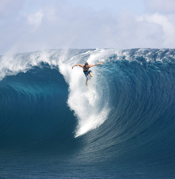 Trên đỉnh sóng - ảnh chụp một vận động viên đang lướt trên đỉnh sóng tại Teahupoo, thuộc quẩn đảo Tahiti.
