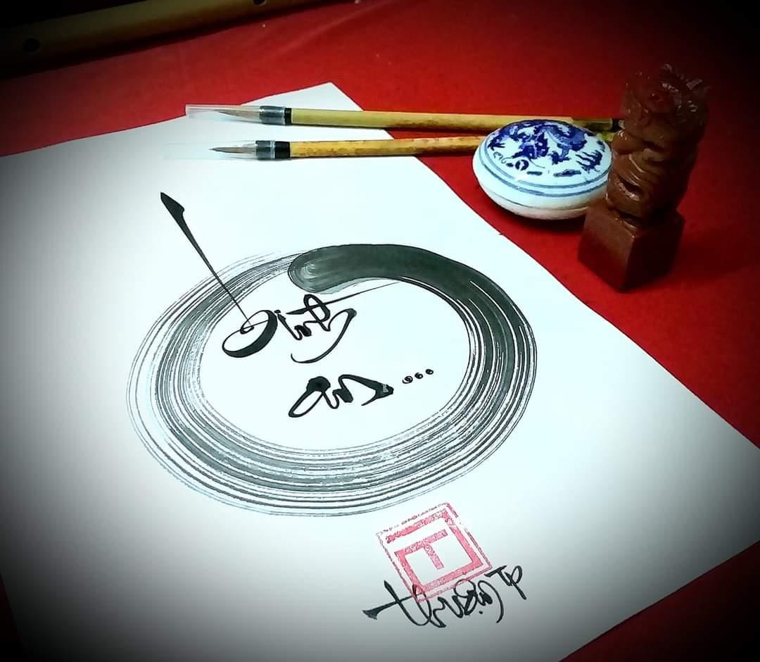 | Tác phẩm tranh vẽ bằng chữ thư pháp của Thuận. |