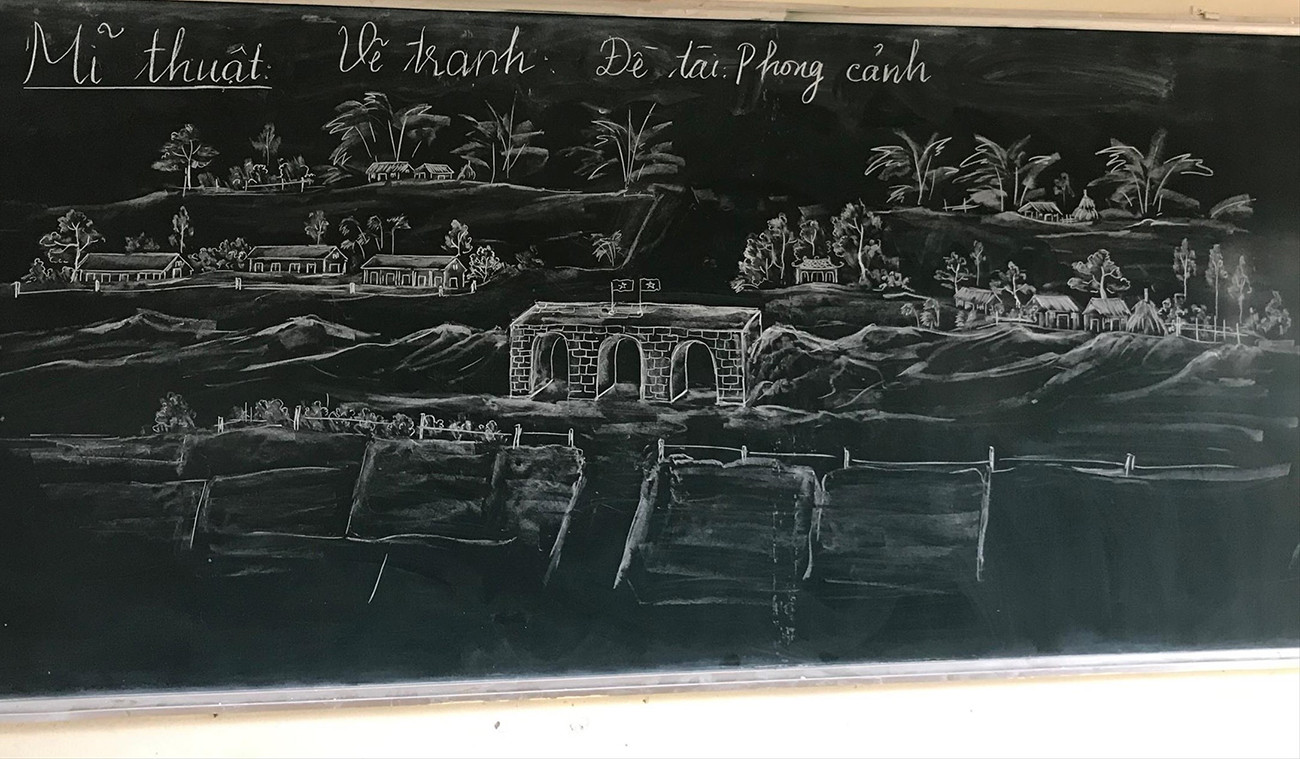 Một bức tranh phong cảnh bằng phấn trắng của thầy Hùng