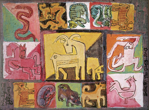Bức vẽ 12 con giáp được thực hiện năm Quý Mùi 2003.