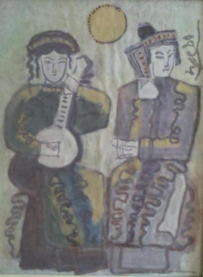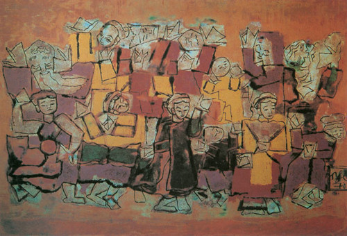 "Điệu múa cổ" - tranh sơn mài vẽ năm 1970.