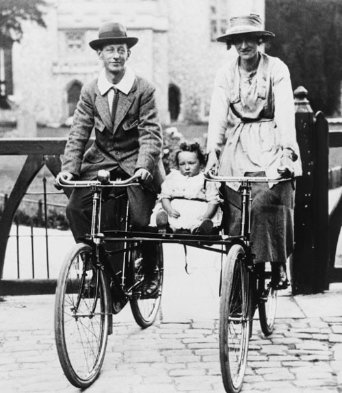 2. Chỗ ngồi cho bé giữa hai xe đạp: Em bé được ngồi trên tấm ngang bắc giữa hai xe đạp. Tuy nhiên phương án này có vẻ không khả thi vì khó điều khiển, nó cũng không được sản xuất thêm những năm sau này.