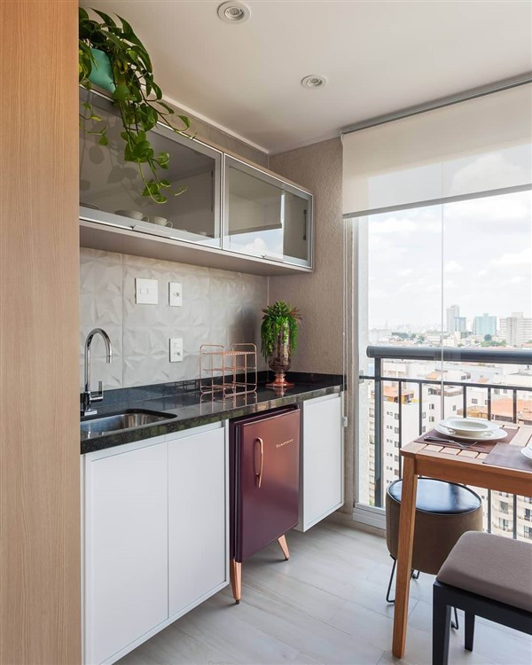 Hoặc bạn cũng có thể nghĩ đến đưa căn bếp ra ban công để tránh mùi đồ ăn khi sử dụng.
