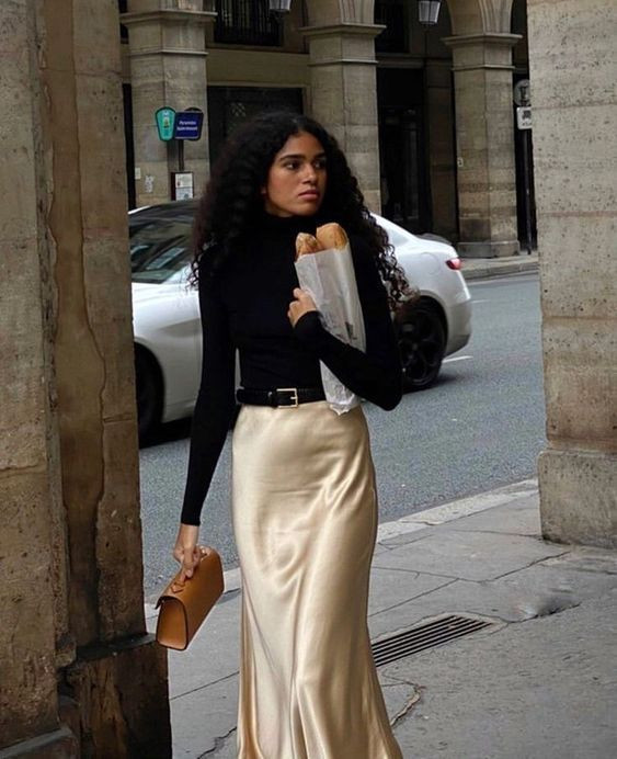Chìa khóa của set đồ này chính là chất liệu và tông màu, hãy chọn váy maxi bằng vải cashmere, lụa hoặc những chất liệu tạo cảm giác đắt tiền, màu càng trầm, nhẹ, càng đạt được hiệu ứng sang trọng và thanh lịch.