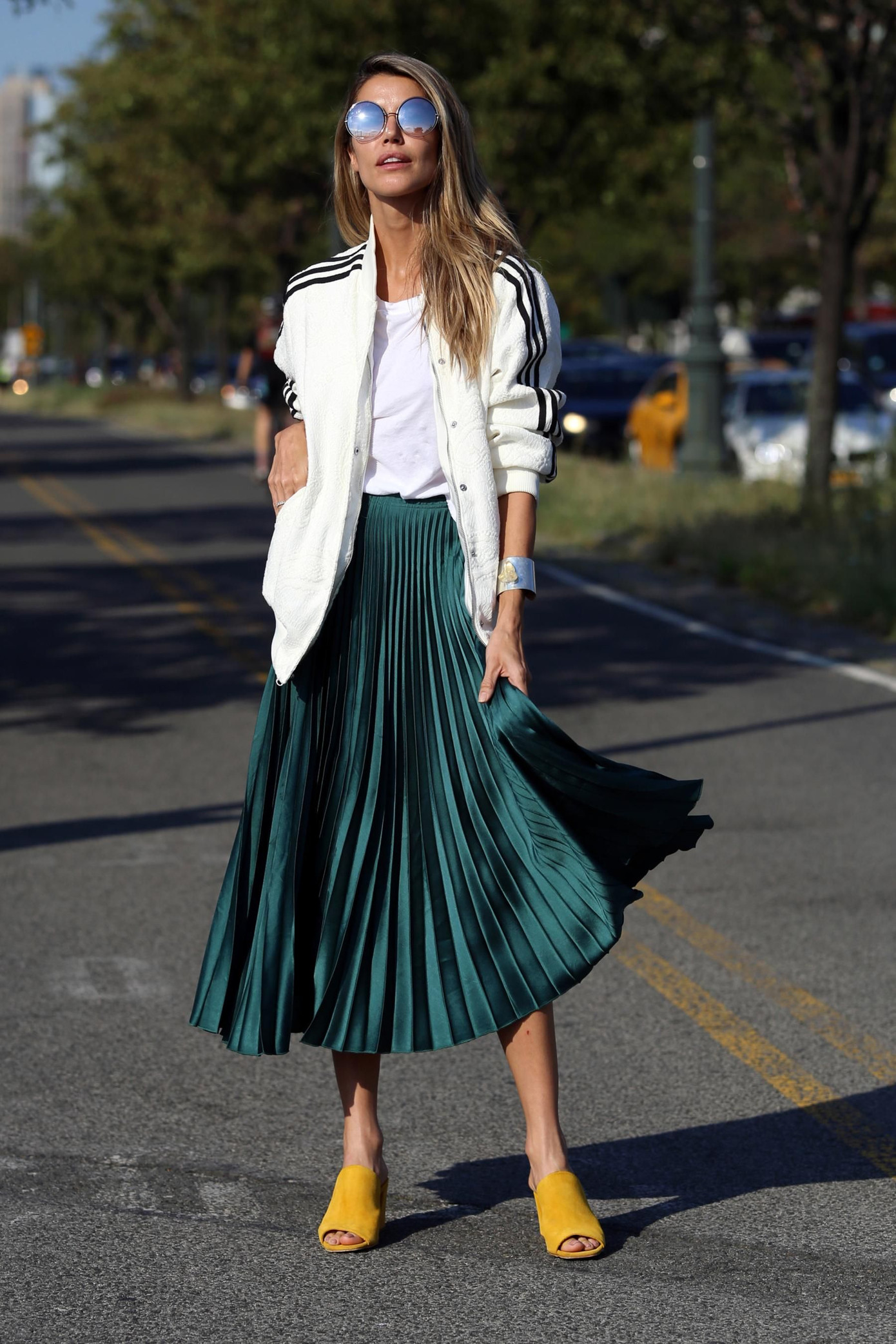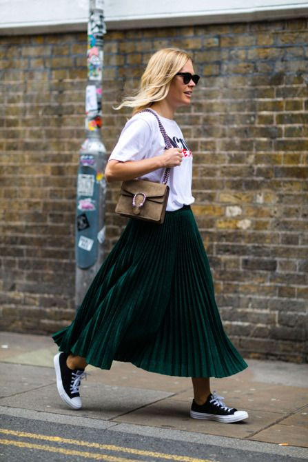 Váy maxi được phối theo phong cách thể thao giúp bạn có vẻ ngoài thú vị năng động và trẻ trung. Nếu thêm giày thể thao cổ điển và mũ bóng chày, đột nhiên bạn sẽ tỏa ra năng lượng của một người luôn là tâm điểm.