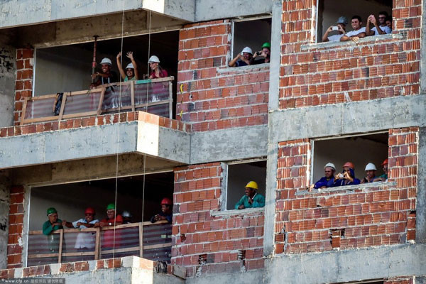 Các công nhân xây dựng trên một công trình ở Fortaleza