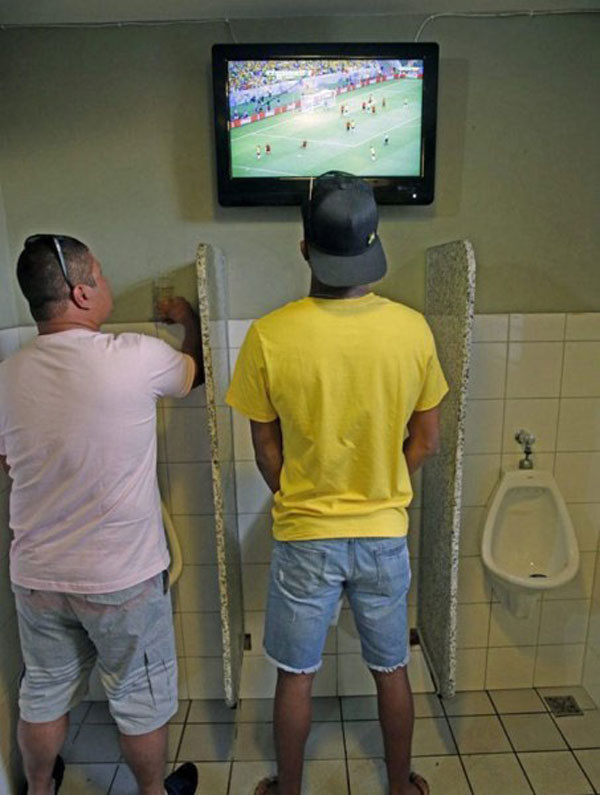 Fan hâm mộ ĐT Brazil xem trong toilet