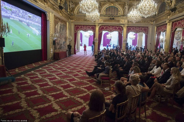 Tổng thống Pháp Hollande cùng đông đảo CĐV nhà xem trận đấu giữa Les Blues và Honduras