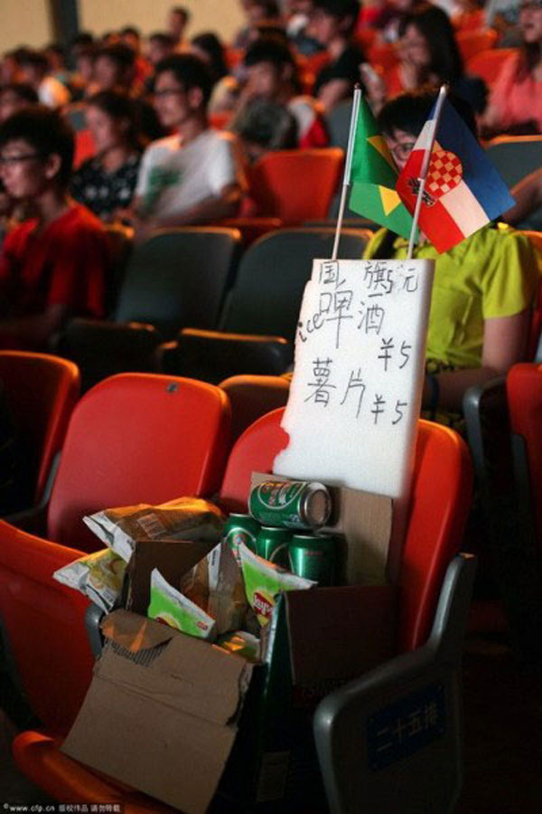 Gần 2.000 sinh viên của Đại học Thâm Quyến tập trung tại trường cùng xem trận khai mạc giữa Brazil và Croatia