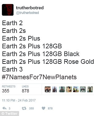 Nổi bật nhất là ý tưởng của người dùng Twitter Joseph Grohman. Chàng trai trẻ nảy ra sáng kiến đặt tên 7 hành tinh theo tên 7 phi hành gia thiệt mạng năm 1986 trong sự cố nổ tàu con thoi Challenger là: "Scobee, Smith, McNair, Onizuka, Resnik, Jarvis, and McAuliffe". Ý tưởng này của Joseph Grohman nhận được gần 6.000 lượt "Like".