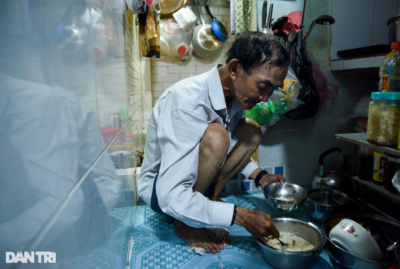 Theo ông Kiệt, vợ ông bị bệnh suy đa tạng, các con đang đi làm ăn xa nên mọi sinh hoạt đều do ông chăm sóc, thỉnh thoảng có nhờ con dâu giúp đỡ việc nhà.