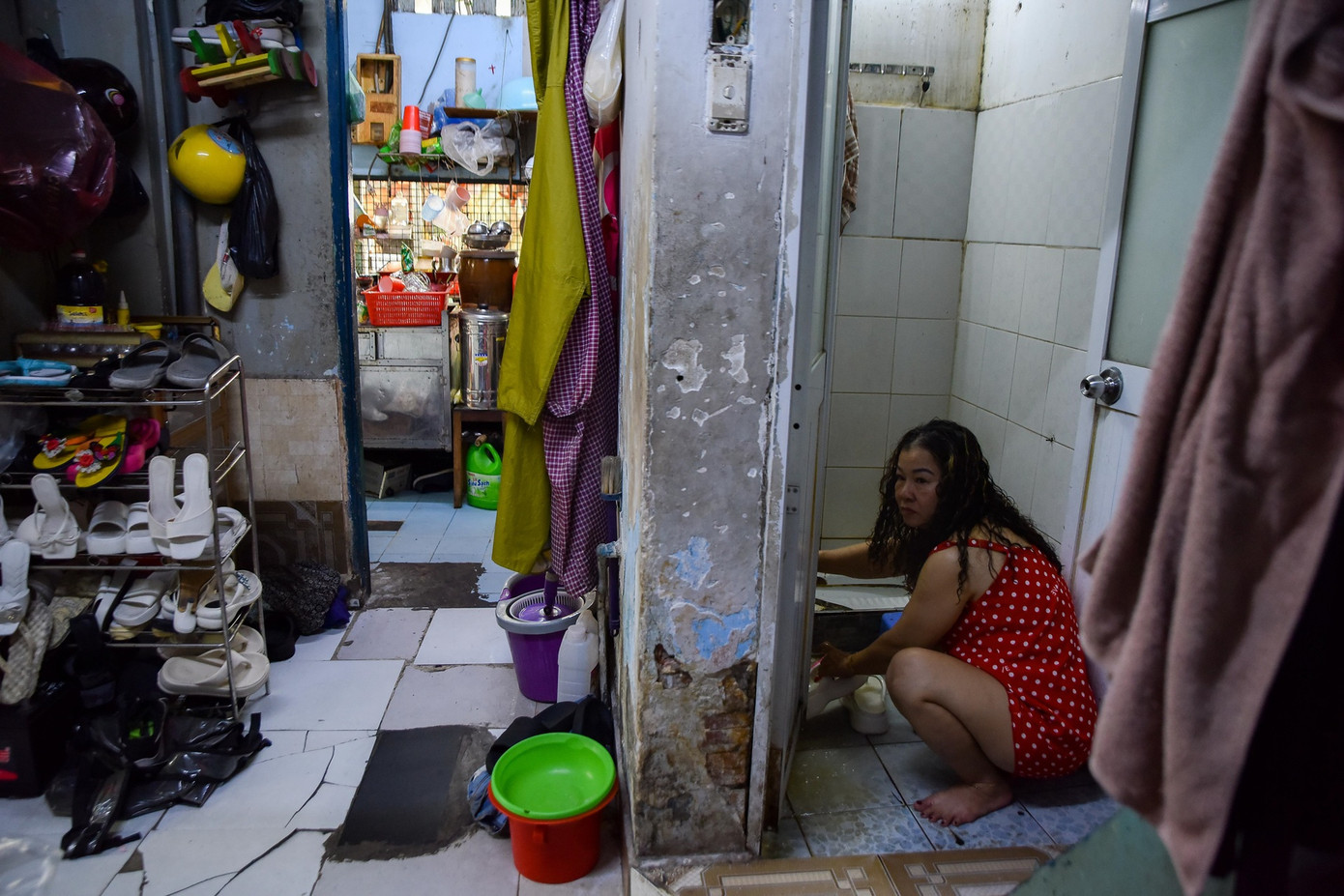 Nằm sâu trong hẻm 245 Nguyễn Trãi (quận 1), nhiều căn nhà siêu nhỏ cũng là nơi nuôi dưỡng nhiều thế hệ trong gia đình. ''Tôi ở đây từ nhỏ nên quen rồi, nếu chuyển đi nơi khác cũng thấy nhớ. Nhà tôi tổng cộng có 13 người nên không gian chật lắm'', chị Nhi (47 tuổi) chia sẻ.