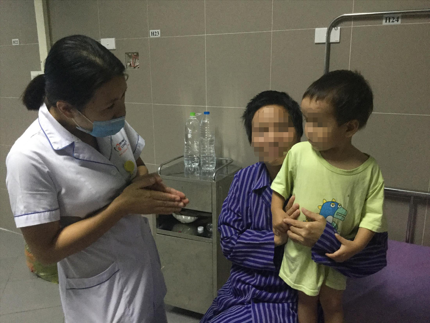 Nói đoạn, điều dưỡng Châu dẫn chúng tôi đến gặp một người bệnh đang điều trị tại bệnh viện. Đó là phụ nữ cắt tóc ngắn, ôm đứa con trai chừng 2 tuổi, khi nhìn thấy người lạ chị nhoẻn miệng cười.