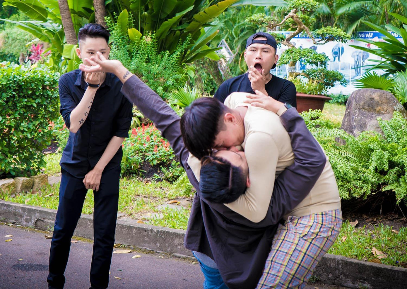 “Cả đoàn phim đều cười nắc nẻ sau cảnh hôn của tôi và Thái Quốc Nguyên vì họ bị bất ngờ. Anh quay phim cười đến rung máy nên chúng tôi buộc phải hôn lại nhiều lần. Nhưng vì tôi và Nguyên đều từng chung nhóm hài với anh Hoài Linh, Chí Tài nên rất ăn ý với nhau”, Quách Ngọc Tuyên kể về nụ hôn phát sinh.