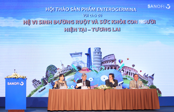 Tại hội thảo với chủ đề “Hệ vi sinh đường ruột và sức khỏe con người: Hiện tại và Tương lai”, Công ty TNHH Sanofi Aventis Việt Nam cũng giới thiệu sản phẩm Men vi sinh Enterogermina chứa 2 tỷ bào tử Bacillus clausii đến các cán bộ, chuyên viên y tế nhằm mang đến những chọn lựa trong định hướng cải thiện sức khỏe, nâng cao kết quả điều trị và dự phòng bệnh tật dựa trên tác động cân bằng hệ vi sinh đường ruột.