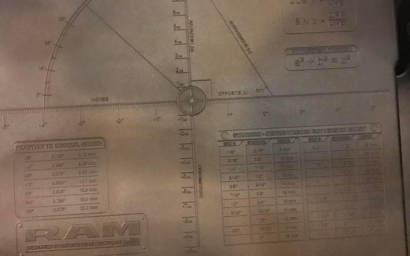 Chiếc xe bán tải Ram 1500 thế hệ mới nhất có thể giúp ích cho quá trình học toán của hành khách. Ngăn chứa đồ dưới tay vịn trong bảng điều khiển trung tâm của chiếc xe hiển thị một số phương trình toán học như Định lý Pitago, biểu đồ phân số đến thập phân và các công thức lượng giác. Mặc dù tỷ lệ cần sử dụng chúng thấp, nhưng biểu đồ chuyển đổi cờ lê từ tiêu chuẩn sang số liệu được cung cấp trên bảng điều khiển thực sự có thể hữu ích trong các tình huống thực tế.