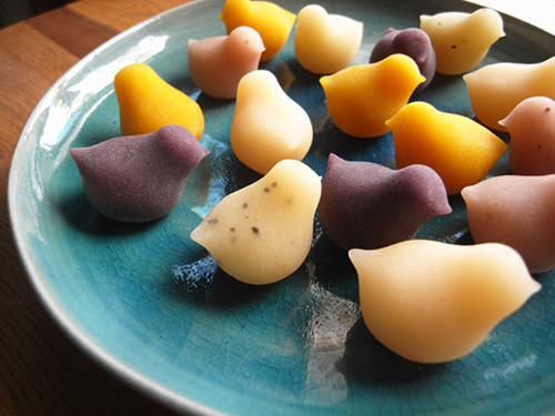 Những chiếc bánh Wagashi đều được sáng tác dựa theo chủ đề thiên nhiên của Nhật Bản, với hình những con chim nhỏ, con mèo lười hay chiếc lá phong, bông hoa anh đào. Mỗi mùa là những loại Wagashi khác nhau. Ảnh: Pinterest.