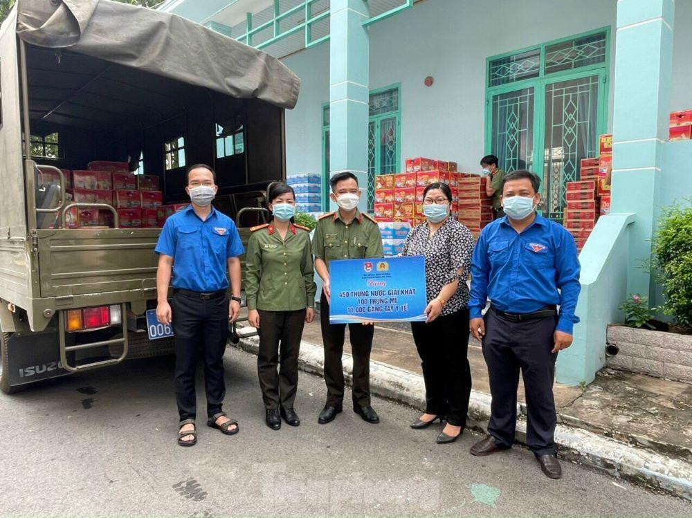 Tại các điểm phong tỏa, cách ly, Đoàn thanh niên Công an tỉnh Bình Dương đã đến hỗ trợ nhu yếu phẩm, gồm nước ướng, mì gói, gang tay, khẩu trang… với tổng giá trị hơn 200 triệu đồng.