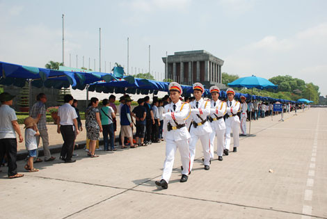 Những ngày tháng 5 này, đến viếng Lăng Bác, chợt nghe bài hát "Chúng con canh giấc ngủ của Người" với những ca từ da diết; hào hùng: "Nghiêm trang trong nắng Ba Đình/ Hoa thơm ngát trời Thủ đô/ Chúng con nguyện hứa với Người: sắt son vì Tổ quốc hy sinh, bảo vệ nước non ngàn đời sáng tươi" có lẽ ai cũng có tâm trạng xúc động. Nơi mảnh đất lịch sử này, ngày ngày đang có những người cần mẫn làm công việc thay Bác đón khách khi Người đi xa.