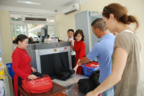 Nhìn những phụ nữ xinh đẹp, duyên dáng trong tà áo dài đỏ, người đứng đón khách từ ngoài cổng, người thì hướng dẫn, người thì trực tiếp kiểm tra an ninh, tiếp nhận và trả hành lý ở cổng vào phía đường Ngọc Hà… dù bận rộn nhưng luôn tươi cười, tận tình hướng dẫn khách như hướng dẫn viên chẳng thể nghĩ đó là những sĩ quan thuộc Ban Tham mưu, Trung đoàn 375.