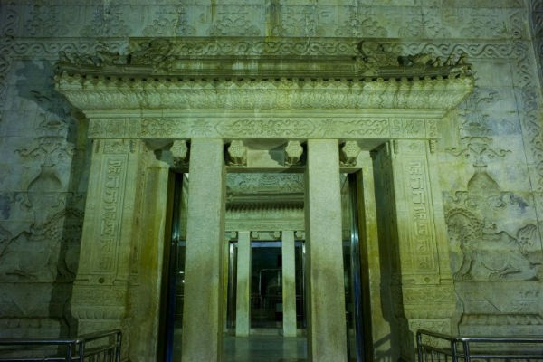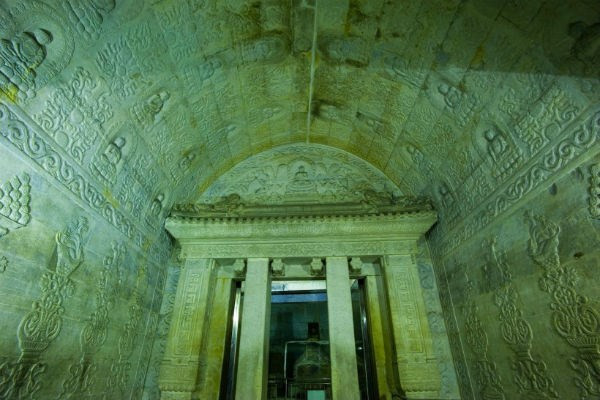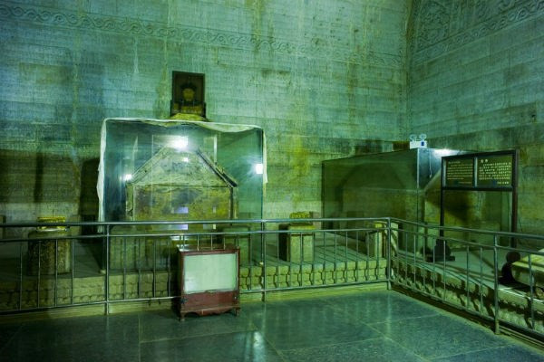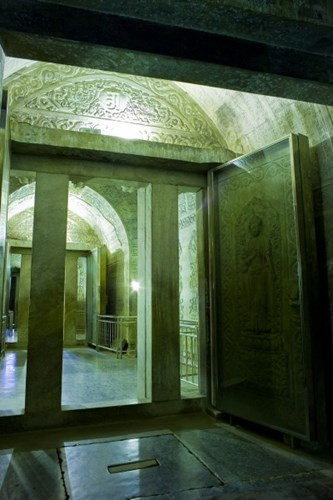 Ông hạ lệnh cho các thợ thủ công và các nghệ nhân khắc tàng văn, phạm văn kinh chú lên tường và mái vòm đỉnh của địa cung. Những nét trạm trổ vô cùng tinh xảo, nét vẽ sống động, chân thực, bố cục chặt chẽ, nghệ thuật điêu khắc trong thời Càn Long đạt trình độ đáng kinh ngạc.