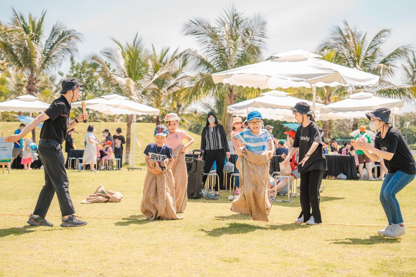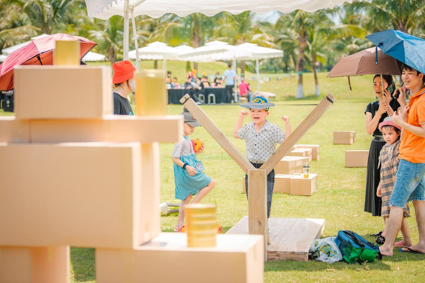 Điểm dừng tại “ga nhảy bao bố”. Chị Thiên Anh (35 tuổi, Hà Đông, Hà Nội) hào hứng động viên con trai tham gia trò chơi. Chị Thiên Anh bảo đã lâu không thấy con trai vận động cuồng nhiệt vui vẻ đến thế. Mồ hôi ướt áo nhưng con vẫn muốn chơi tiếp vì đây là lần đầu tiên con chơi các trò mà không phải liên quan đến điện thoại hay ipad.