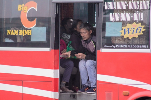 Chuyến cuối về Nam Định của một chiếc xe chật cứng khách.