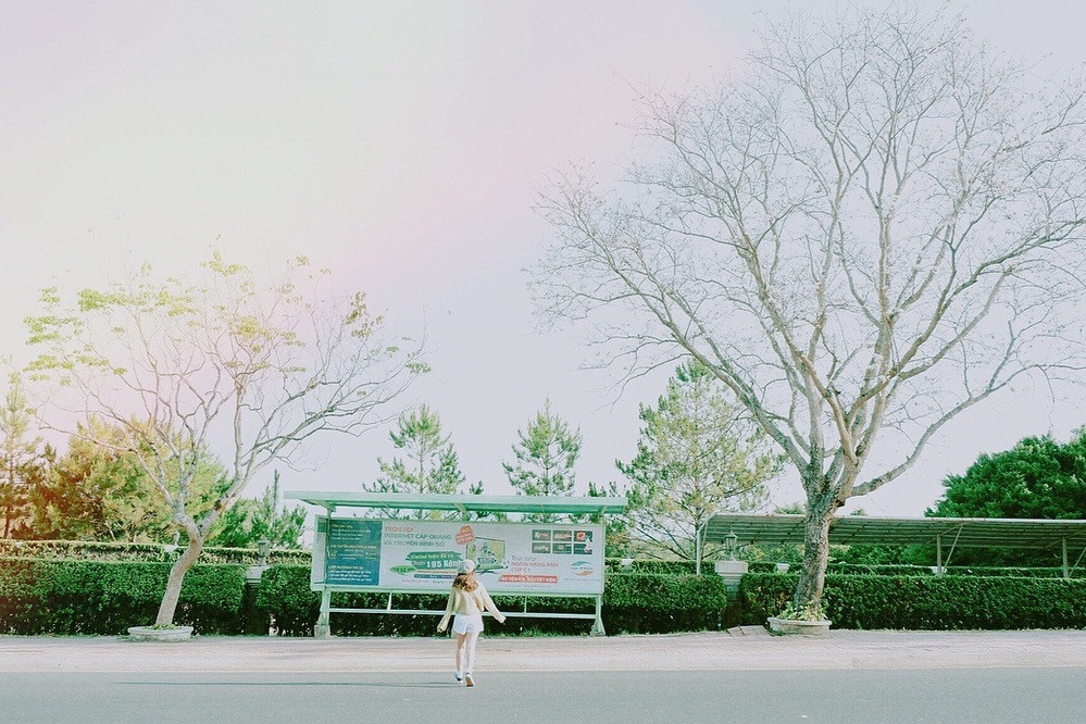 (Ảnh: Hương Võ) Hoa ban nở rộ, trắng xoá cả con đường. Từ trên cao nhìn xuống chúng ta sẽ thấy một con đường ngập tràn hoa với sắc màu thanh khiết trông vô cùng thơ mộng. Phải đi từ từ và thật nhẹ nhàng, đắm chìm trong không gian đó mới có thể "cảm" hết được vẻ đẹp của Đà Lạt lúc chớm đông.