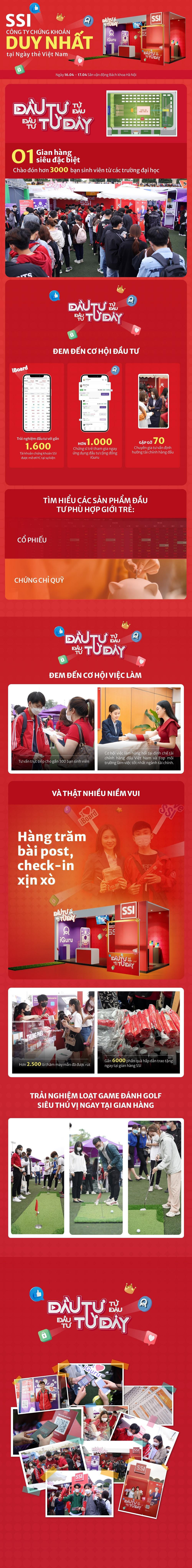 Là công ty chứng khoán duy nhất có mặt tại Sóng Festival - Ngày thẻ Việt Nam, gian hàng của SSI đã thu hút được hơn 3000 nghìn bạn sinh viên ghé thăm chỉ trong hai ngày 16 & 17/4/2022. Có thể thấy việc đầu tư, làm chủ kinh tế vẫn luôn có sức hút lớn và được giới trẻ quan tâm ngay từ khi còn trên ghế giảng đường.