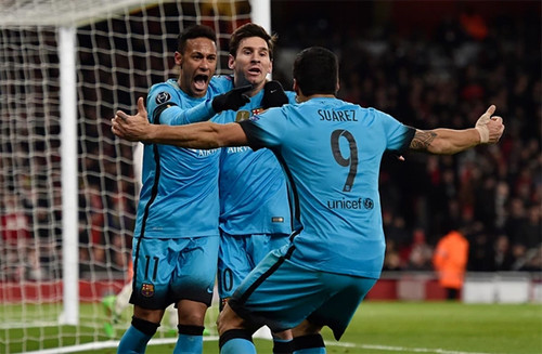 Tính từ tháng 11/2014, khi Luis Suarez bắt đầu chơi cho Barcelona, hàng công đội bóng bắt đầu kết hợp đầy ăn ý và hiệu quả. Cho đến sau trận thắng Arsenal ở lượt đi vòng 16 đội Champions League mới đây, Messi có 87 bàn và Neymar sở hữu 62 bàn. Suarez gia nhập đội bóng chưa lâu nhưng đang chơi như từng rất quen thuộc, ghi 66 bàn.
