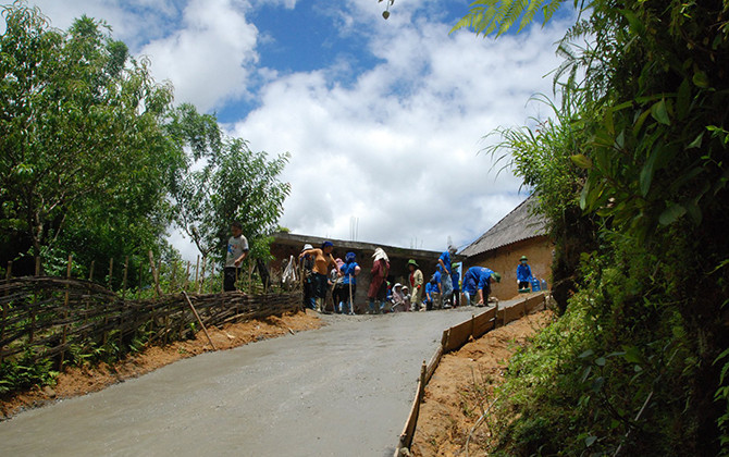 Con đường vào thôn Lao Chải 2 dốc dựng đứng, đường đất nên mỗi khi trời mưa là trơn trượt, người dân rất khó khăn trong việc đi lại. Ý tưởng bê tông hóa con đường nhanh chóng được các chiến sĩ tình nguyện trường ĐH Y Dược (ĐH Thái Nguyên) bắt tay thực hiện.