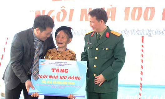 Công trình xây dựng 70 ngôi nhà chào mừng kỉ niệm 70 năm thành lập Quân đội Nhân dân Việt Nam: Nguồn kinh phí xây dựng được lấy từ mô hình “Ngôi nhà 100 đồng”, xây dựng từ tiền tiết kiệm của tất cả cán bộ đoàn viên, thanh niên đang học tập, công tác trong quân đội, mỗi người tiết kiệm và đóng góp 100 đồng/ngày bằng nhiều hình thức: đóng góp giấy vụn, vỏ lon, tiết kiệm điện, nước…; Năm 2014, đã xây dựng 70 “ngôi nhà 100 đồng” tại xã Tam Kim và Hoa Thám, huyện Nguyên Bình, tỉnh Cao Bằng, là nơi thành lập Đội Việt Nam tuyên truyền giải phóng quân – tiền thân của Quân đội Nhân dân Việt Nam anh hùng. Thanh niên quân đội hỗ trợ 50-55 triệu đồng/ ngôi nhà. Công trình hoàn thành vào dịp  kỉ niệm 70 năm ngày thành lập Quân đội Nhân dân Việt Nam và 25 năm Ngày hội Quốc phòng toàn dân. Ảnh: Nguyễn Minh