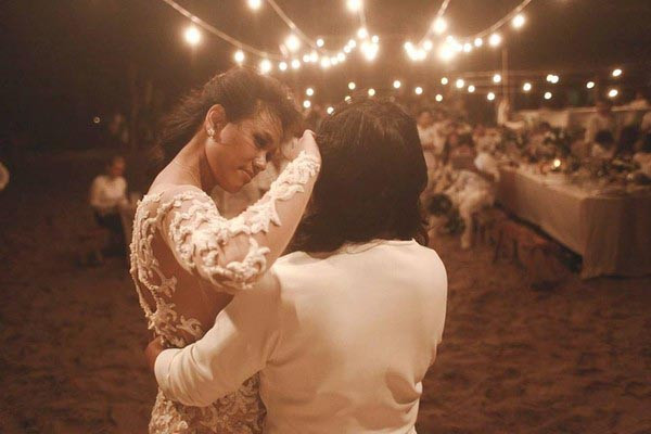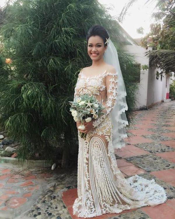 Trong đám cưới được tổ chức vào tháng 3/2015, ca sĩ Phương Vy hào hứng chia sẻ việc được mẹ ruột tự tay may cho chiếc váy cưới gợi cảm.