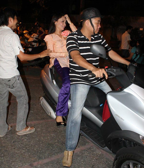 Ca sĩ Cẩm Ly từng được ông xã Minh Vy đưa đi, đón về bằng xe máy khi giọng ca "Chim trắng mồ côi" tham gia biểu diễn ở một chương trình gần nhà.