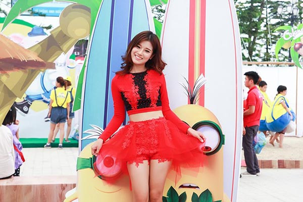 Hoàng Yến Chibi từng khoe được mẹ thiết kế cho bộ váy kì công để đi sự kiện. Bộ trang phục đỏ nổi bật này đã được mẹ cô thức cả đêm (từ 9h tối đến 4h sáng - pv) để may cho con gái.