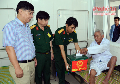 Cử tri Hồ Đình Liễu trú tại xã Lưu Sơn (huyện Đô Lương) được các bác sĩ Bệnh viện Quân Khu 4 đưa hòm phiếu tới tận giường bệnh để lựa chọn ứng cử viên cho mình. Tại điểm bầu cử số 8 này có 485 cử tri, trong đó có 89 cử tri là bệnh nhân bệnh nặng, đau lâu ốm dài đều được thực hiện nghĩa vụ và quyền lợi tại phòng khám.