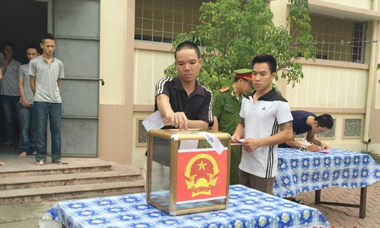 Cũng trong buổi sáng hôm nay, 727 cử tri tại trại tạm Nghi Kim – Công an tỉnh Nghệ An được cầm trên tay lá phiếu đi bầu cử đại biểu Quốc hội khóa XIV và đại biểu HĐND các cấp nhiệm kỳ 2016-2021.
