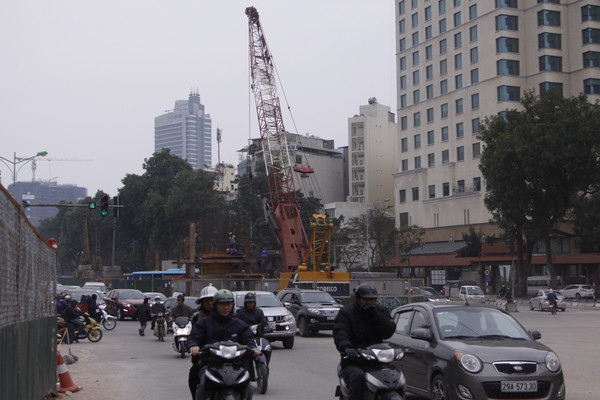 Công trình cầu vượt Nghi Tàm vẫn đang trong thời gian thi công ảnh hưởng không nhỏ đến giao thông từ nút giao Nghi Tàm, Thanh Niên đến cầu Thăng Long. Đây là một tuyến đường đi về phía Bắc Thủ đô với lưu lượng cực lớn trong những ngày “về quê ăn Tết”.